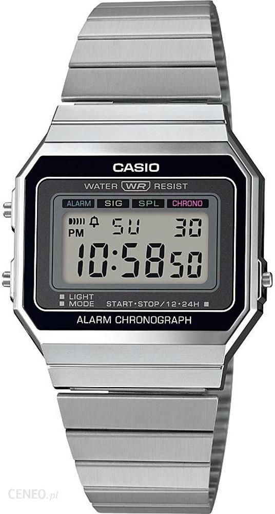 Nazwa produktu Casio Vintage A700WE-1AEFEAN 4549526221774Kolekcja VintagePłeć damskiOdczyt cyfrowyMateriał koperty tworzywo sztuczneTyp mechanizmu KwarcowySzerokość koperty 36 mmGrubość koperty 6Rodzaj szkła akryloweAlarm takStoper takTimer takPodświetlenie takDatownik takKolor koperty srebrnyKolor tarczy czarnyKolor paska/bransolety srebrny