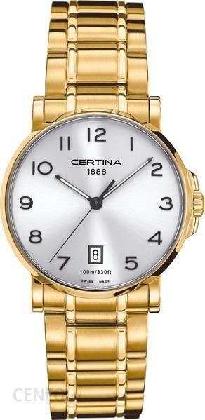 DS Caimano -Inne modele z kolekcji-Certina C017.410.33.032.00 DS CaimanoW zgodzie ze swoją filozofią Certina zawsze wykazywała nadzwyczajne przywiązanie do innowacyjnego wzornictwa. Dziś kreatywność projektantów marki skoncentrowana jest na nowoczesnym sportowym stylu. Niezależnie czy u jego podstaw leży styl klasyczny, elegancki czy ekstremalnie sportowy zegarki szwajcarskiego producenta zawsze reprezentują zegarmistrzostwo najwyższej próby, a ich wzornictwo stanowi kwintesencję aktualnych światowych trendów.DANE TECHNICZNE:Dla kogo: Męskie,Dodatkowe Funkcje: Datownik ,Gwarancja: 2 Lata,Koperta – Grubość: 8.60 mm,Koperta – Kolor: Złoty ,Koperta – Kształt: Okrągły,Koperta – Materiał: Antyalergiczna , Stal Szlachetna ,Koperta – Szerokość: 38.00 mm,Koperta – Wysokość: 38.00 mm,Kraj Producenta: Szwajcaria,Mechanizm: Kwarcowy ,Pasek – Kolor: Złoty ,Pasek – Materiał: Antyalergiczny , Stal Szlachetna ,Pasek – Szerokość: 21.00 mm,Styl: Klasyczny,Szkło – Rodzaj: Szafirowe ,Tarcza – Kolor: Srebrna,Tarcza – Oznakowanie: Cyfry Arabskie,Waga: 115 g,Wodoszczelność: 10ATM/100m ,