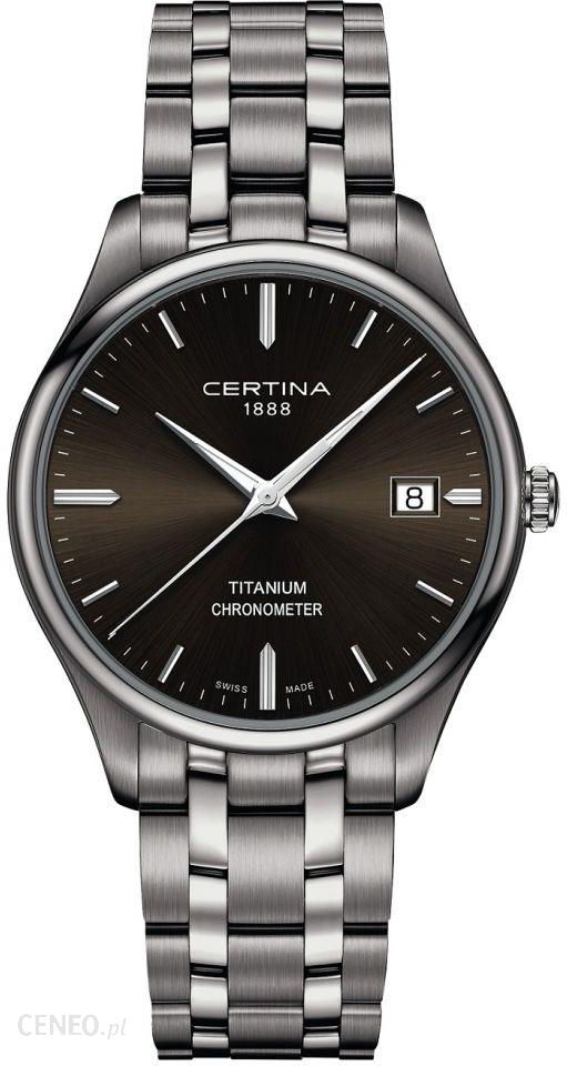 Początki marki CERTINA sięgają XIX wieku, kiedy to w 1888 roku bracia Adolf i Alfred Kurth założyli przedsiębiorstwo Kurth Freres SA w szwajcarskiej miejscowości Grenchen. Niewielki zakład zegarmistrzowski przylegał do ich rodzinnego domu, a trzej zatrudnieni pracownicy wykonywali mechanizmy oraz różnego rodzaju elementy używane do konstrukcji czasomierzy kieszonkowych. Takie były początki marki Certina. Od momentu powstania, aż do dziś Certina stawia na jakość i niezawodność swoich produktów. Precyzja, innowacyjność i niezawodność charakteryzują filozofię marki Certina. W 1959 roku Certina opracowała swój słynny system zabezpieczeń Double Security DS Concept, nadając swoim zegarkom wyjątkową wytrzymałość i nadzwyczajną wodoszczelność. Certina może pochwalić się wieloletnim zaangażowaniem w świat sportu. Marka jest szczególnie aktywna w obszarze sportów motorowych. Celem marki jest stałe podwyższanie poziomu obsługi jak również podnoszenie już bardzo wysokiej jakości produktów.W ofercie marki znajdziemy zegarki męskie oraz damskie. Klasyczne, eleganckie zegarki oraz te o bardziej sportowym charakterze. Czasomierze na bransoletach, paskach skórzanych, kauczukowych, a nawet na paskach typu NATO. Z pewnością każdy znajdzie dla siebie odpowiedni zegarek, dopasowany do swojego stylu i charakteru.Ten zegarek jest ciekawy, bo…Zegarek Certina DS-8 Titanium C033.451.44.081.00 to elegancki zegarek z okrągłą tarczą na tytanowej, polerowanej bransolecie. Koperta otrzymała rozmiar 40 mm, co jest wartością optymalną dla tego typu czasomierzy i wykonana została z tytanu. Tytan jest materiałem bardzo wytrzymałym, a przy tym bardzo lekkim, około 40% lżejszym od stali. Bransoleta wykonana z drobnych ogniw została idealnie dopasowana do obudowy, dzięki czemu możemy liczyć na bardzo wysoki komfort użytkowania. Tarcza otrzymała wyraziste indeksy oraz wskazówki w srebrnym kolorze, które idealnie kontrastują z grafitową, bardzo czytelną tarczą zegarka. Odpowiednio wykonany cyferblat oraz datownik umieszczony na godzinie 3, ożywiają czasomierz i nadają mu odpowiedniego charakteru. Wodoszczelność została ustalona na poziomie 100 m/10 ATM, co wydaje się być wartością wręcz idealną. Zachlapanie, mycie rąk a nawet deszcz nie spowodują przykrych dolegliwości, które mogą mieć wpływ na pracę mechanizmu. Czasomierz napędzany jest poprzez najwyższej jakości szwajcarski mechanizm kwarcowy zasilany baterią. Jest to oczywiście mechanizm, który zapewni nam precyzję i dokładność chodu na najwyższym poziomie.Warto go mieć na nadgarstkuMamy do czynienia z klasycznym, niezwykle eleganckim zegarkiem wyposażonym w szwajcarski mechanizm kwarcowy, który zapewni nam bezawaryjną funkcjonalność w codziennym użytkowaniu. Zegarek elegancki, ale też funkcjonalny i trwały. Wymarzony do stroju casualowego i sportowego. Zapewni doskonałe towarzystwo w biurze – w miejscu pracy, na spacerze i na wycieczce. Najwyższa jakość, zaawansowane mechanizmy i wzornictwo na światowym poziomie sprawiają, że mamy do czynienia z czasomierzem, który będzie naszym wiernym towarzyszem przez wiele lat. Oczywiście, aby czasomierz prezentował się odpowiednio, musi zostać wcześniej dopasowany. Bardzo ważna jest wielkość koperty, szerokość paska czy długość bransolety. Dlatego przy zakupie zegarka na bransolecie, na życzenie klienta bezpłatnie dopasowujemy długość bransolety zgodnie ze wskazanym obwodem nadgarstka.Nasza ocenaJuż na pierwszy rzut oka widać, że mamy do czynienia z wyjątkowym czasomierzem obok którego nie da się przejść obojętnie. Sprawdzone rozwiązania zarówno w kwestii wzornictwa jak i użytych materiałów czy mechanizmów sprawiają, że czasomierze tej marki cały czas zdobywają nowych zwolenników. Prosta, niezawodna konstrukcja oraz klasyczny design powodują, że zegarek świetnie sprawdza się w codziennym użytkowaniu. Jednakże nic nie stoi na przeszkodzie, aby założyć go do stroju bardziej eleganckiego, bowiem model ten pasuje zarówno do garnituru jak i casualowej marynarki. Perfekcyjne wykonanie, dbałość o detale i sprawdzone mechanizmy, tak właśnie prezentują się zegarki marki Certina. Naszym zdaniem to fantastyczny pomysł na prezent dla siebie ewentualnie podarunek dla bliskiej osoby. Ten piękny czasomierz zadowoli każdego, nawet najbardziej wymagającego miłośnika zegarków. Na osobną uwagę zasługują szkła stosowane przez producenta. W celu zapewnienia odpowiedniej przejrzystości oraz wytrzymałości Certina stosuje najwyższej jakości szkła szafirowe, które oferują celującą wręcz odporność na wszelkiego rodzaju uszkodzenia czy zarysowania. Jeśli potrzebujesz wiernego towarzysza, który będzie perfekcyjnie odmierzał mijający czas, to bez wątpienia jest to czasomierz idealny dla Ciebie.Jako oficjalny sprzedawca informujemy i gwarantujemyWszystkie zegarki oferowane w naszym sklepie są fabrycznie nowe, posiadają minimum 2-letnią gwarancję, firmowe opakowanie oraz wszystkie niezbędne dokumenty dostarczone przez producenta. Do zakupionego zegarka dołączany jest paragon zakupu lub na życzenie kupującego faktura VAT. Istnieje możliwość bezpłatnego dopasowania bransolety w naszym salonie stacjonarnym. Klienci którzy zdecydują się na zakup zegarka w naszym sklepie internetowym, także mogą liczyć na wstępne dopasowanie bransolety przed wysyłką.