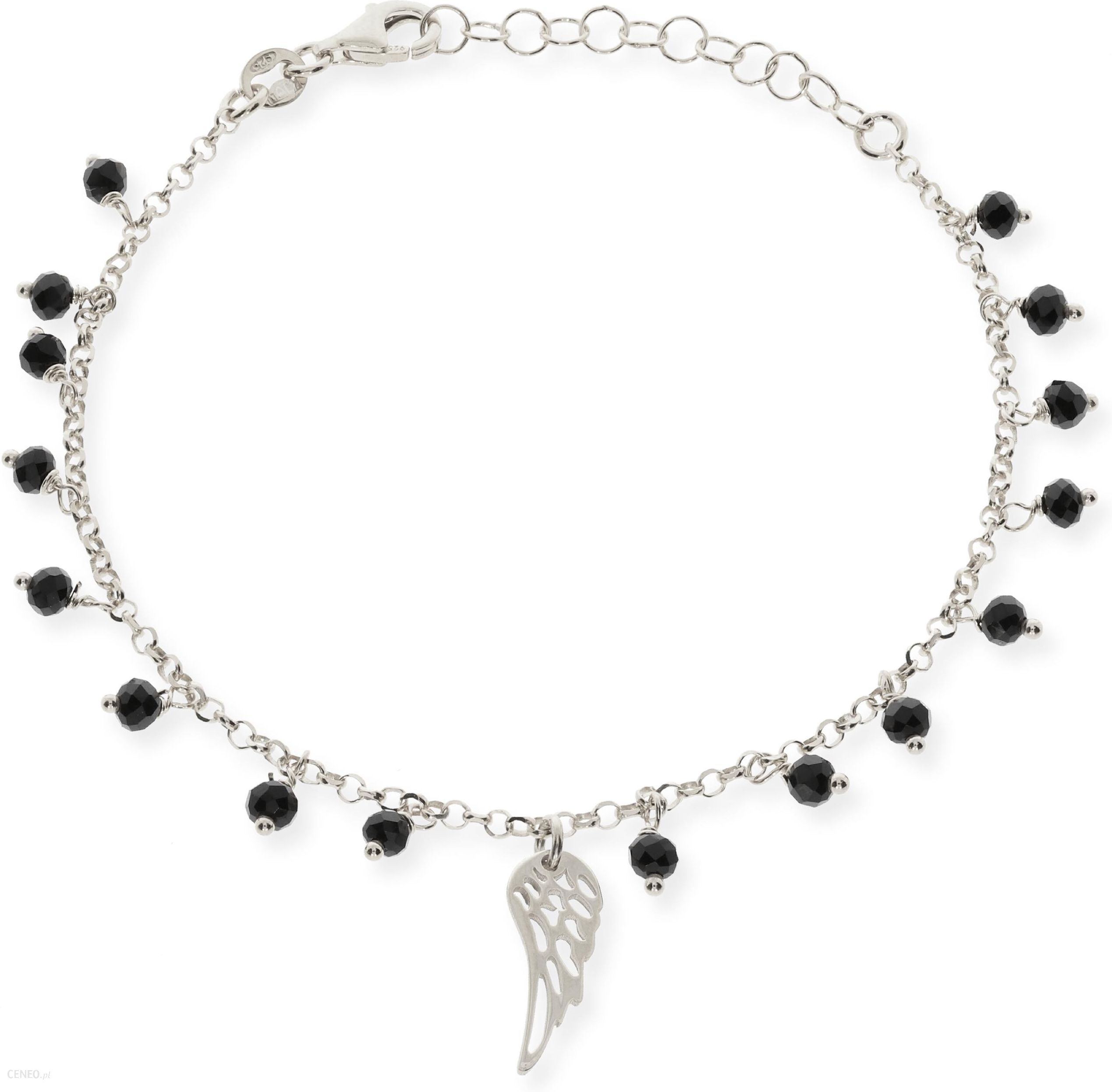 Srebrna bransoletka celebrytka Próby 925Wymiary:długość bransoletki regulowana 18,5 – 21,5 cmszerokość/długość elementu 6 mm/1,6 cmwielkość kamienia 3 mmszerokość bransoletki 2 mmSrebrna bransoletka z kamieniami i skrzydłem przedstawiona w naszej ofercie została wykonana z wysokiej jakości srebra próby 925. Biżuteria została stworzona z pasją i wielką precyzją, aby zapewnić komfort jej użytkowania.Prezentowana bransoletka dzięki swemu pięknu doda Ci blasku. Jest to biżuteria, która będzie Ci służyć przez długi czas, zarówno od święta jak i na co dzień.W naszej ofercie posiadamy niezwykle szeroki wybór innych modeli bransoletek różniących się wagą, sposobem wykonania a także finezyjnymi wzorami. Dostępne są bransoletki pełne, solidnie zrobione jak również puste w środku, dzięki czemu osiągają niższą cenę. Posiadamy bransoletki rodowane jak również nierodowane.Na życzenie grawerowana dedykacja na tabliczce umieszczonej wewnątrz pudełeczka. W przypadku zakupu powyżej 100 złotych dedykacja gratis.Tabliczka laminowana w kolorze złotym z grawerem dowolnego tekstu w kolorze czarnym.Treść graweru należy podać w „wiadomości do sprzedającego”W zestawie otrzymujesz:- Nową biżuterię badaną przez Polski Urząd Probierczy- Oryginalne firmowe pudełeczko (gratis)- Metkę jubilerską- Na życzenie grawerowaną tabliczkę z dedykacjąWaga: 2.930 gr