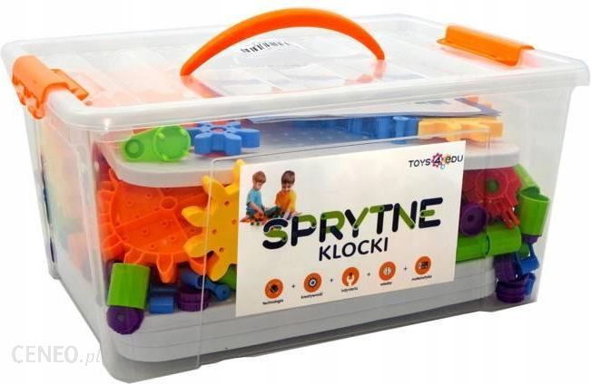 Sprytne klocki. Zestaw konstrukcyjny koła zębate 340 elementówNumer katalogowy: 723237Dane produktu:Koła konstrukcyjne, to nowoczesne, klocki konstrukcyjne do tworzenia dowolnych budowli.Klocki wykonane są z wysokiej jakości plastiku, łatwe w łączeniu. Do zestawu dołączona jest ulotka z pomysłami ale najwięcej zabawy daje własne tworzenie!Całość zapakowana w praktyczne, plastikowe pudełko ułatwiające przechowywanie.Koła konstrukcyjne są atrakcyjną zabawką powyżej 3 roku życia.Podstawowym elementem zestawu są koła zębate, dzięki którym budowane konstrukcje można wprawiać w ruch.Klocki konstrukcyjne rozwijają koordynację wzrokowo-ruchową, wyobraźnię przestrzenną, wzmacniają małą motorykę, czyli sprawność palców i małych rąk. Rozbudzają kreatywność, uczą planowania i logicznego myślenia.Dzięki temu, że dziecko samodzielnie wymyśla i tworzy z rozsypanych klocków, uczy się cierpliwości, poznaje podstawowe zasady fizyki i mechanizmy otaczającego świata, rozwija się manualnie i intelektualnie. Klocki są najlepszą inwestycją w rozwój i udaną zabawę dziecka!Ilość elementów: 340Producent: Toys4eduSeria: Sprytne klockiWiek: +3 lataWymiary opakowania: 41x28x19 cmSeria Sprytne klocki to klocki konstrukcyjne o różnorodnych strukturach, kształtach i sposobach łączenia. Wykonane precyzyjnie z wysokiej jakości tworzywa, zamknięte w trwałych i wygodnych opakowaniach.Zestawy pozwalają na kreatywną zabawę dziecka, rozwijają zdolności manualne, doskonalą precyzję ruchów, kształtują kreatywność, uczą kształtów i kolorów oraz rozwijają logiczne myślenie.Sprytne klocki można wykorzystywać na wiele sposobów:- do konstruowania- do sortowania- do nauki kolorów – w zestawie znajdują się elementy w różnych kolorach- do nauki kształtów – z klocków można utworzyć dowolny kształt- do nauki liczenia – klocki z powodzeniem można wykorzystywać w roli liczmanów